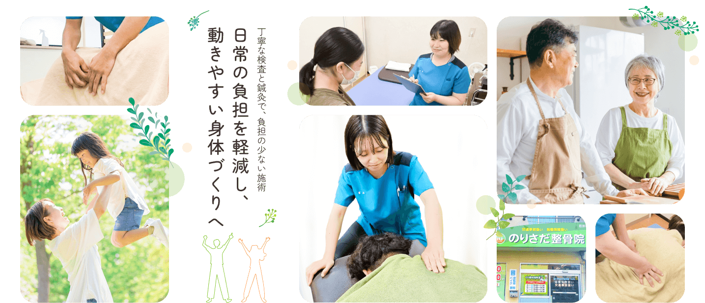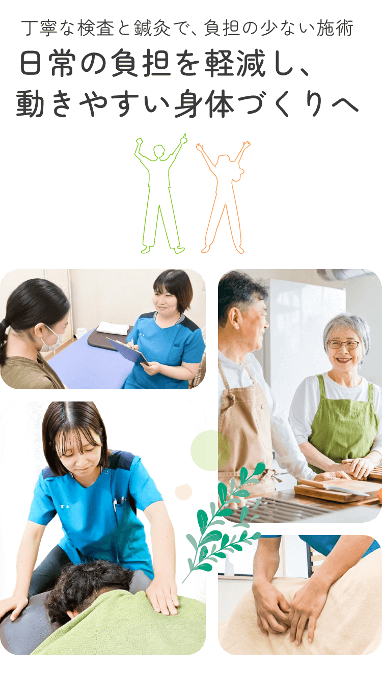 当院では、肩こり・腰痛など慢性的な症状に加え、産後骨盤矯正や交通事故治療、美容鍼などのメニューも対応しております。
