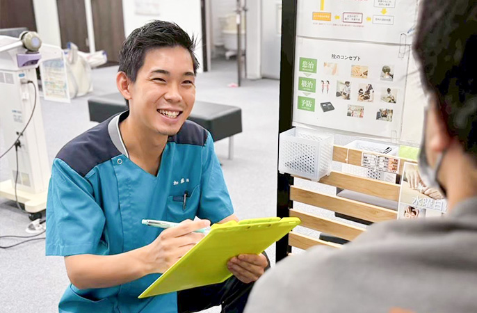 痛みの度合いや、お身体の状態について詳しくお話をお伺いします。